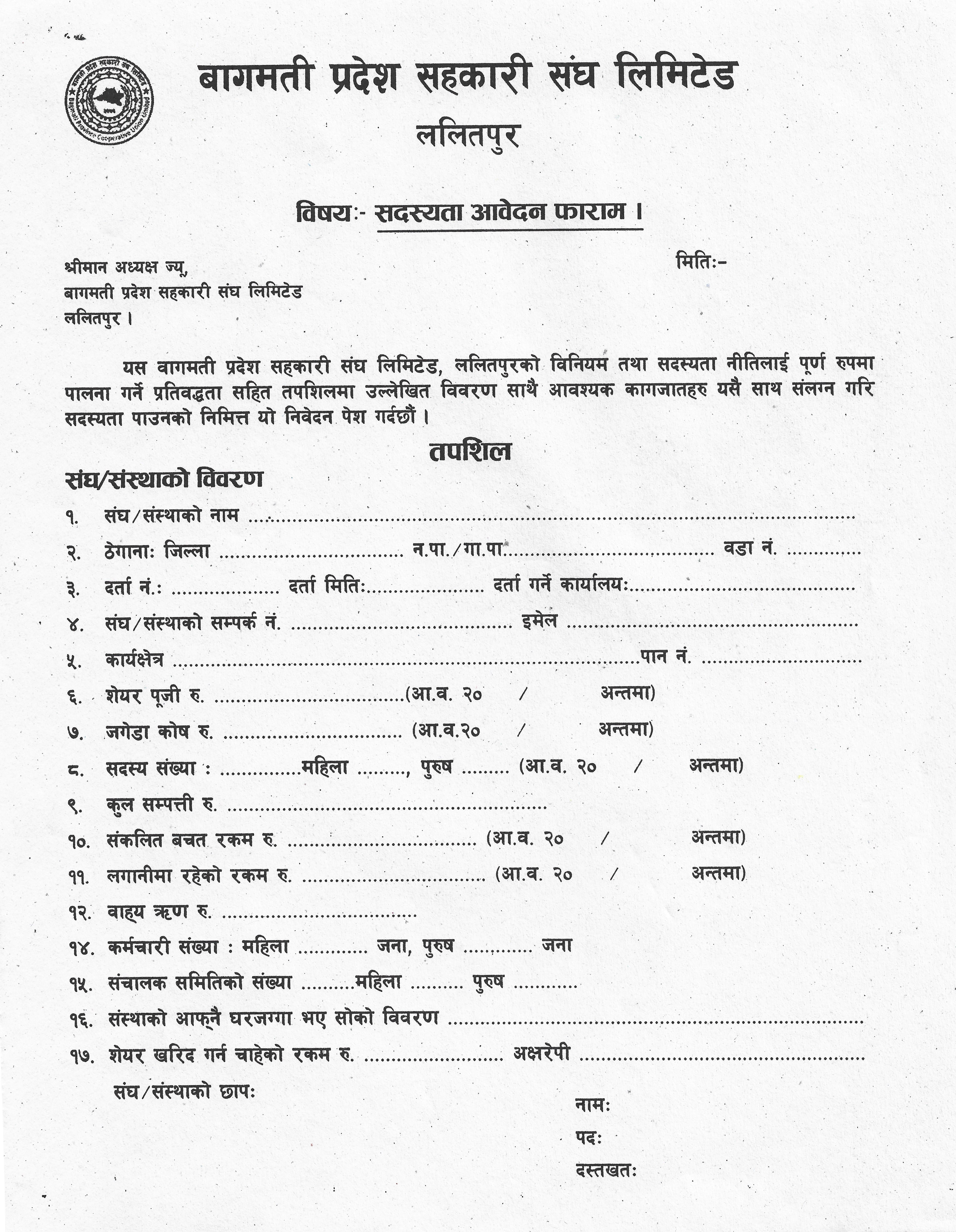 बागमती प्रदेश का २० वटा केन्द्रीय स्तरका सहकारी युनियनहरू रहेका छन्: उपभोक्ता, बचत र उधारो , मत्स्यपालन, बीज, र पर्यटन। थप रूपमा यसको सदस्यहरूमा राष्ट्रिय सहकारी बैंक, ३०६ जिल्ला स्तरका सहकारी युनियनहरू छन्। योसँग १३ सम्बन्धित सदस्यहरू छन्।